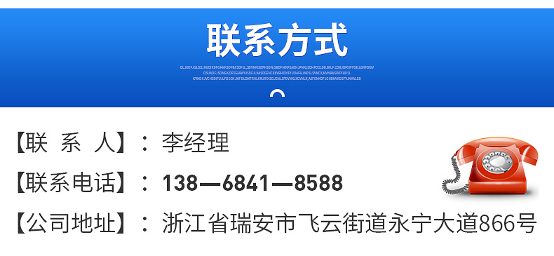 地址:瑞安市飛云街道永寧大道866號 手機:13868418588 電話:0577-65559376 傳真:0577-65031992