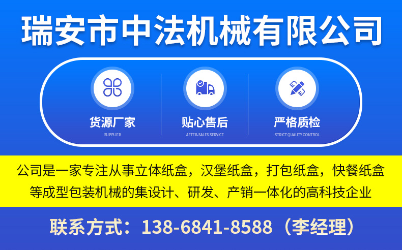 瑞安市中法機(jī)械有限公司,中法機(jī)械,立體成型紙盒機(jī),紙杯機(jī),紙碗機(jī),漢堡盒機(jī),模切機(jī),成型包裝機(jī)械