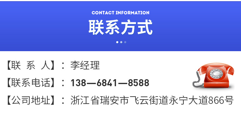 地址:瑞安市飛云街道永寧大道866號(hào) 手機(jī):13868418588 電話:0577-65559376 傳真:0577-65031992